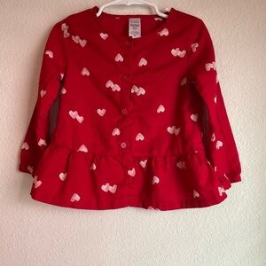 Carter's Red and White Button Down Shirt with Peplum Style size 3T