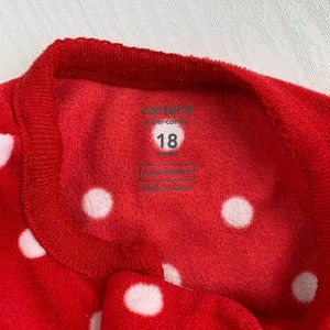 Carters footed blanket fleece sleeper in red and white polka dots. Reindeer applique and reindeer feet. Perfect for Christmas! Size 18 months.