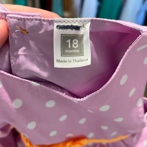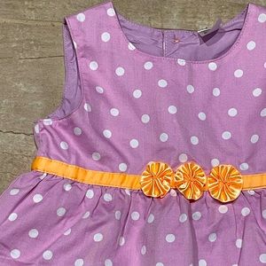 Carter’s Purple Polka Dot Ruffle Dress. Size 18 mo. Lightweight cotton material (not knit like) with orange satin detail. Worn once! Excellent condition!