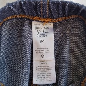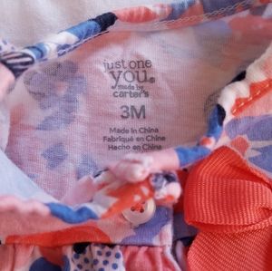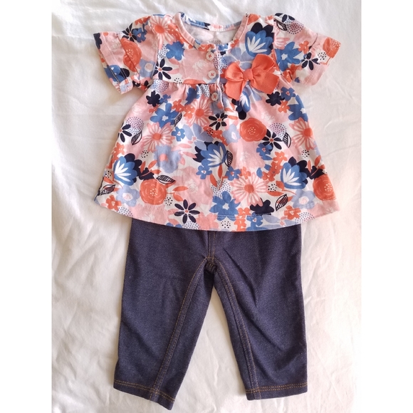 Shirt and pants set from Just One You by Carter's. 3 month size. Colorful floral print short sleeve top with bow and 3 buttons at neck. Jean looking leggings.