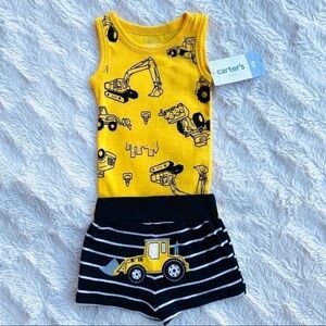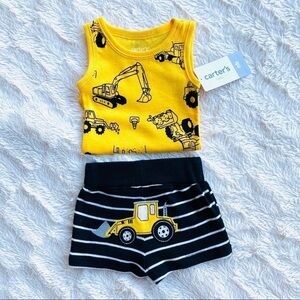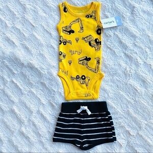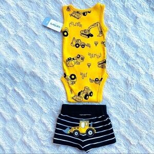 Set features a construction themed bodysuit and coordinating pull-on shorts