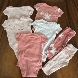 Carter’s Set of 7 Bodysuits and Leggings - Pink and Soft Pink Size 9M