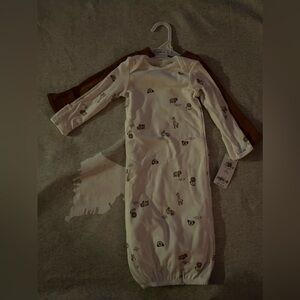Two gowns with long sleeves and elastic bottom. One solid rust color; the second is safari animals in a matching rust color. Great for those early diaper changes!!