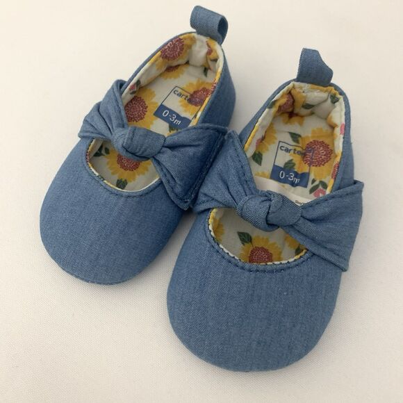 Carters Shoes Baby Girl 0-3 Months Blue Chambray Denim Ballet Flats Closed Toe