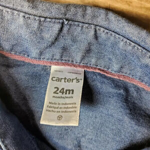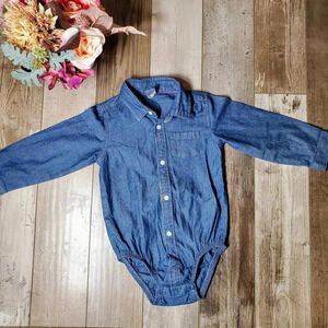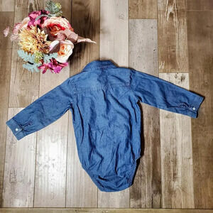 Carter's Size 24m Medium Wash Blue Chambray Toddler Boy Button Down Bodysuit