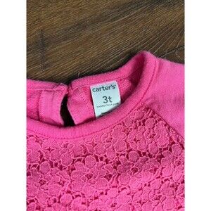 You are purchasing a Carter’s Size 3T Hot Pink 3/4 Sleeve Tunic, Lace Bodice! A little bit of fading and wear. No stains or holes. Smoke free home. I will ship within one business day of purchase. Thank you!