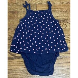 Carter's Strawberry Pink Cotton AOP Romper Ruffle Smocked Baby Girl 12 Months