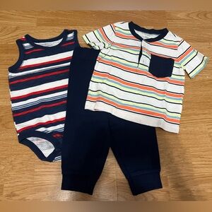 Carter’s Striped Baby Outfit Set with Bodysuit,Shirt and Pants (Size 12 Months)