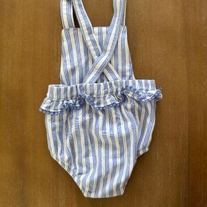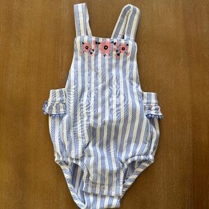 Carter's blue & white striped bubble romper with embroidered floral detail