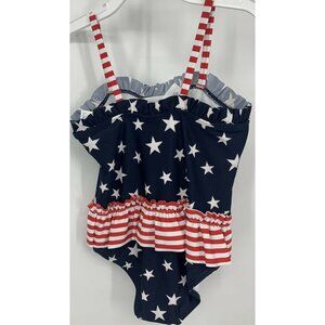 Carters Swimsuit One Piece Size 4 4T Blue White Red Star Girls Ruffle New B67