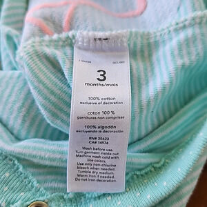 Carter's Teal White Stripped Baby Girl Flamingo Cotton Romper 3M