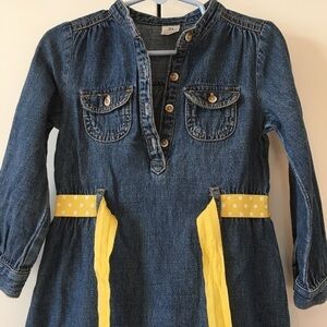 Carter's Toddler Girl's All Cotton Denim Blue Long Sleeves Half Button Up Belted Dress