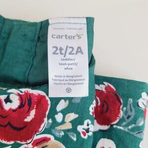 Carters Toddler Girls Floral Print Green Sleeveless A Line Dress 2T
