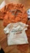 Clothing Bundles, Multiple Brands (Carter’s, Old Navy, Tommy Bahama). Includes rust pants and puppy sweatshirt, blue and white polo, blue plaid shirt, and striped onesie. Ideal for versatile wear.