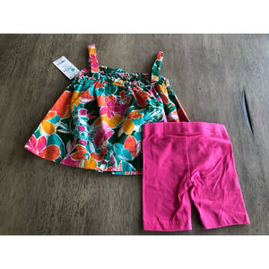 Carters Two Piece Tropical Print Top and Pink Shorts - 24M