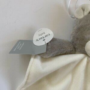 New With Tags Carters White Brown Bear Security Baby Blanket Lovey Pacifier Holder.