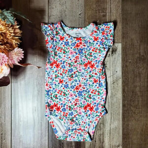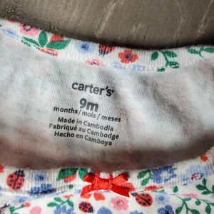 Carter's White Floral Wildflower Lady Bug One Piece Bodysuit Cotton Size 9m NWOT