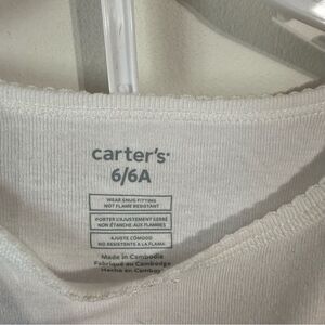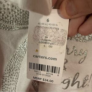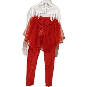 Charming kids set from Carter's. White top with silver bow design. Red leggings complete the look. Perfect for festive occasions.