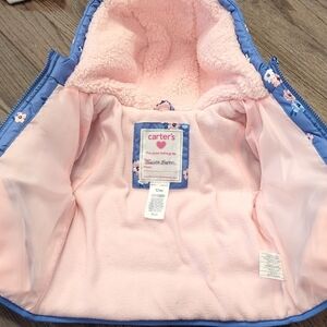Carters Winter Jacket Puffer with Hood Girls 12M Blue Floral