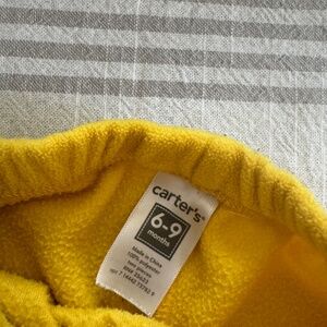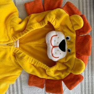 Adorable lion costume by Carter's. Features a yellow body with an orange mane. Soft and cozy material. Perfect for Halloween fun.