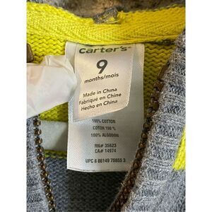 Carter’s Yellow/Gray Striped Hooded Full Zip Cardigan Sweater Baby Size 9 Months