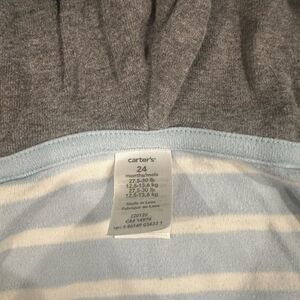 Carters baby blue stripped boys zip up jacket size 24 months in excellent pre owned condition. Has an adorable dog on the front