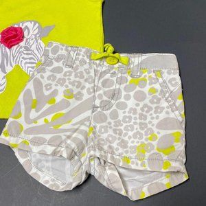 Adorable bright chartreuse yellow/green tee with glitter zebra on front, and matching zebra print elastic waist shorts....super cute, and in excellent condition.