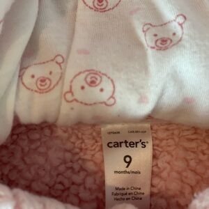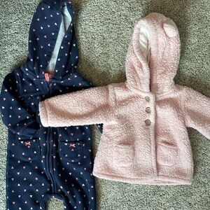 Carters baby girl pink fuzzy coat jacket and warm fleece hooded jumpsuit size 9M