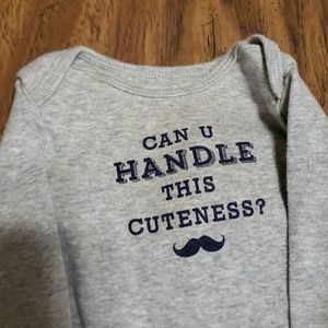 Long sleeve onesie, tshirt, and pants. Light discoloration at neckline on the grey onesie(see pictures)