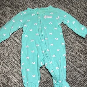Mint zip up footie- has small stain