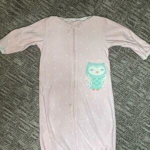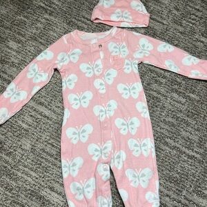 Pink and white floral button up footie with matching hat- never worn