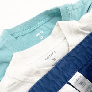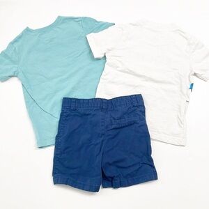 Carter's dinosaur + shark print t-shirts + blue shorts toddler boy matching sets