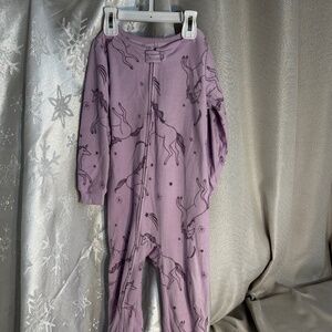 Adorable. Light purple, Unicorn feet and full zip. Fleece material. Excellent condition, one child. Fragrance-free.