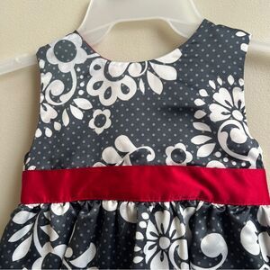 Carter’s gray white & red tiered dress Size 5 Attached red tie belt Preowned Nonsmoking