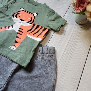 Carter's green short sleeve shirt with grey shorts 2 piece set Size 3 mo NWT