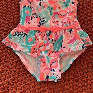 Carters just one you 9M floral one piece bath in suit w snap crotch and ruffles