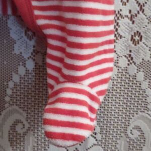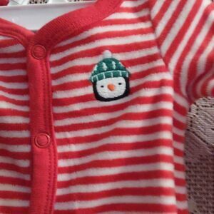 Carter's red and white velour onesie snap closure penguin head wearing a stocking cap applique, perfect condition size Newborn