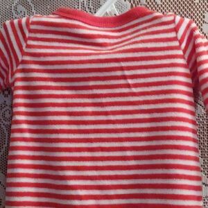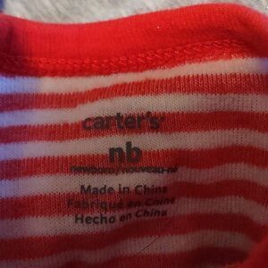 Carter's newborn red & white stripe onesie with penguin applique snap closure