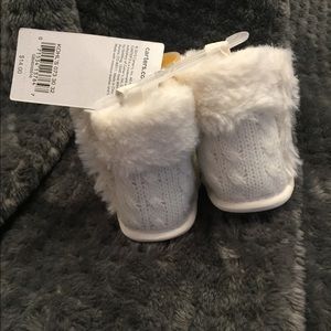 Carters white fuzzy sweater boots. NWT. Newborn size. Smoke free and pet free