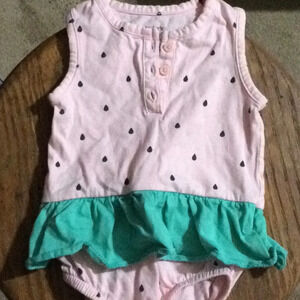 Watermelon inspired onesie with little seeds all over. SO adorable.