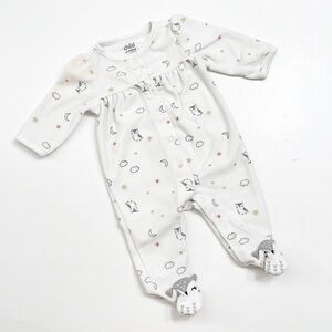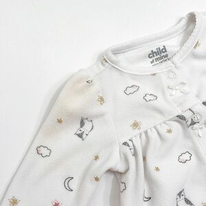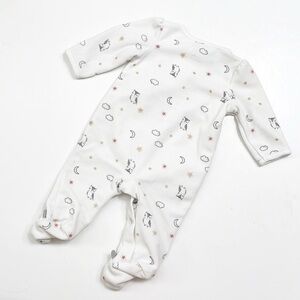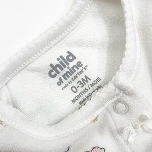 Carter’s owl print fleece baby footie Size 0-3 months Good pre owned condition (has large stain on shoulder as shown)