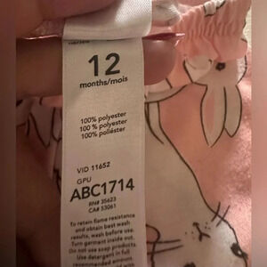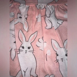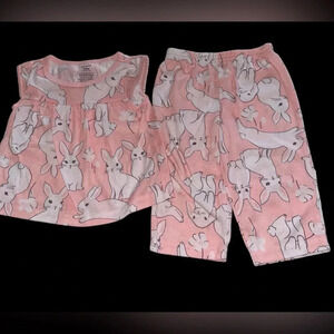 Carters pajamas for spring or summer girls size 12 months pink white cottontail bunnies on ruffled top with adorable pants to match.