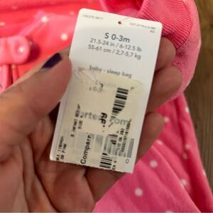 Carters pink polka dots butterfly sleep bag size small baby 0 to 3 months new