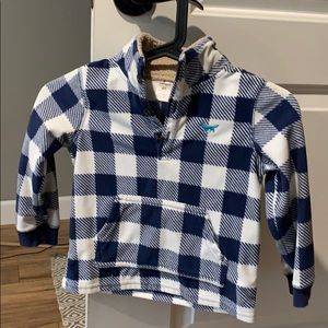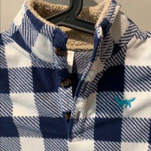 Boys Navy and white check print pull over. Fleece with Sherpa collar. Worn twice.