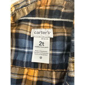 Carter’s short sleeve button down plaid yellow blue boys sz 2T
