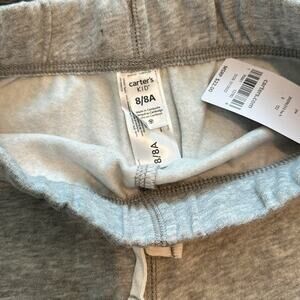 New with tags (NWT) Carter's boy’s jogger pants size 8. This light gray make these bottoms a great neutral for any boy’s closet. Sporty look in these joggers with classic white drawstring. Pull on style with elastic waistband and comfortable banding at waist and ankles. Sweatpants are very soft and comfortable for everyday wear.