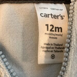 Carters size 12 Months zip up hoodie bundle. One light blue and one green. Both are in excellent, like new condition and smoke free/pet free home