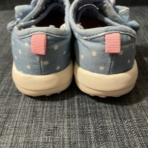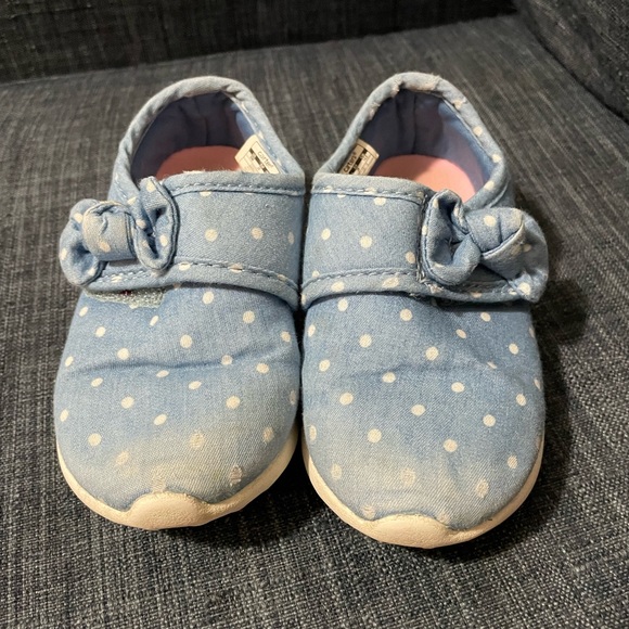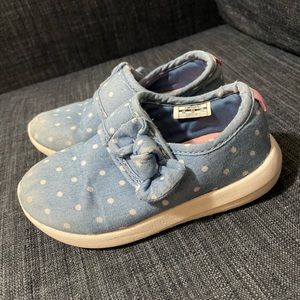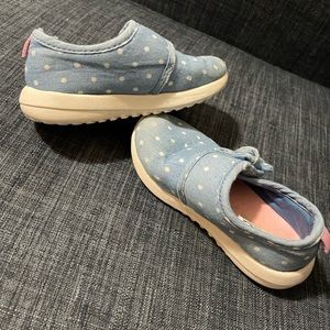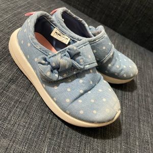 Previously loved toddler sneakers. Demin looking color with velcro bow strap. Some wear in the front. Size 8. Carter’s brand