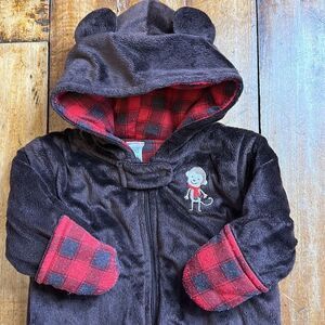 Carters snow suit Newborn unisex Winter Pram Suit snowsuit fleece brown plaid