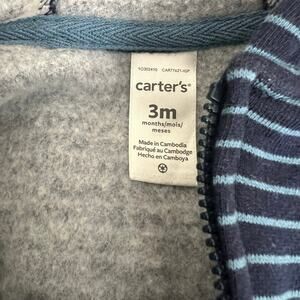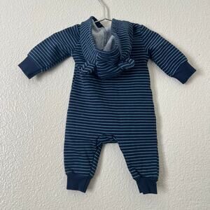 Carter’s stripe bear ear bunting hoodie zip one piece navy blue, Size 3 Months. Good used condition.